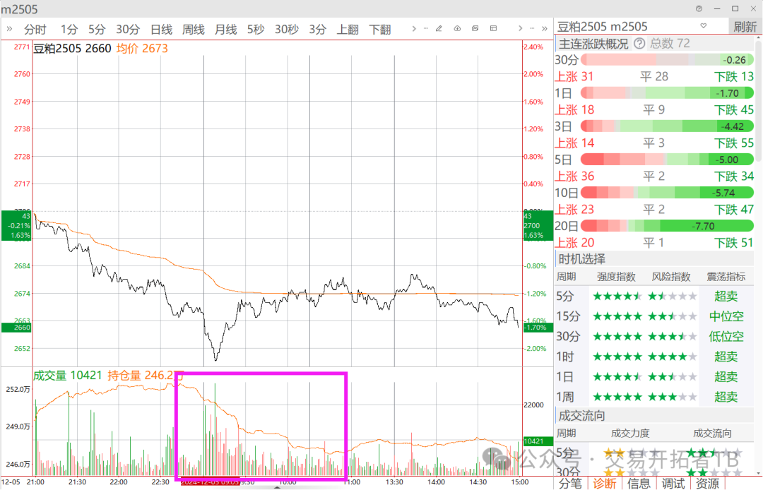 结果, 收盘拉回去了, 真是厉害,而豆粕是在同时间段减得仓位,