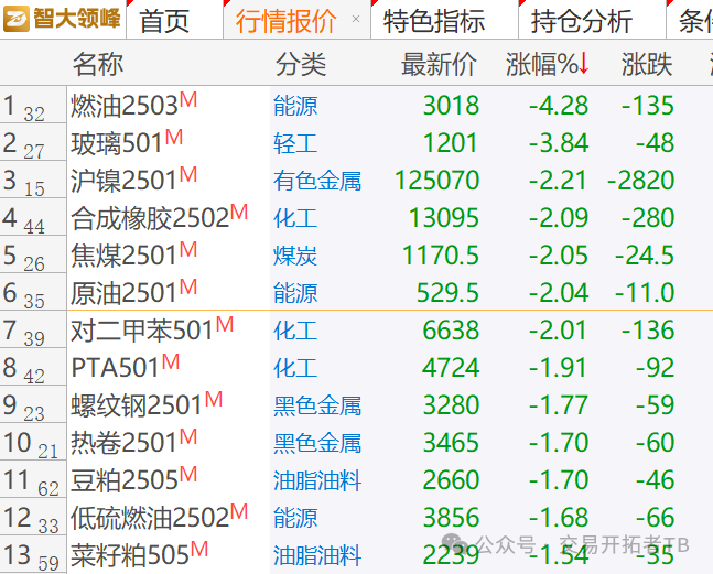 从绝对值涨跌来看, 今天普跌,尤其是原油相关的品种,