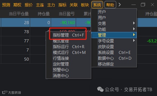 在这个状态之后,第一步在软件右上角系统菜单栏里找到【指标管理】。