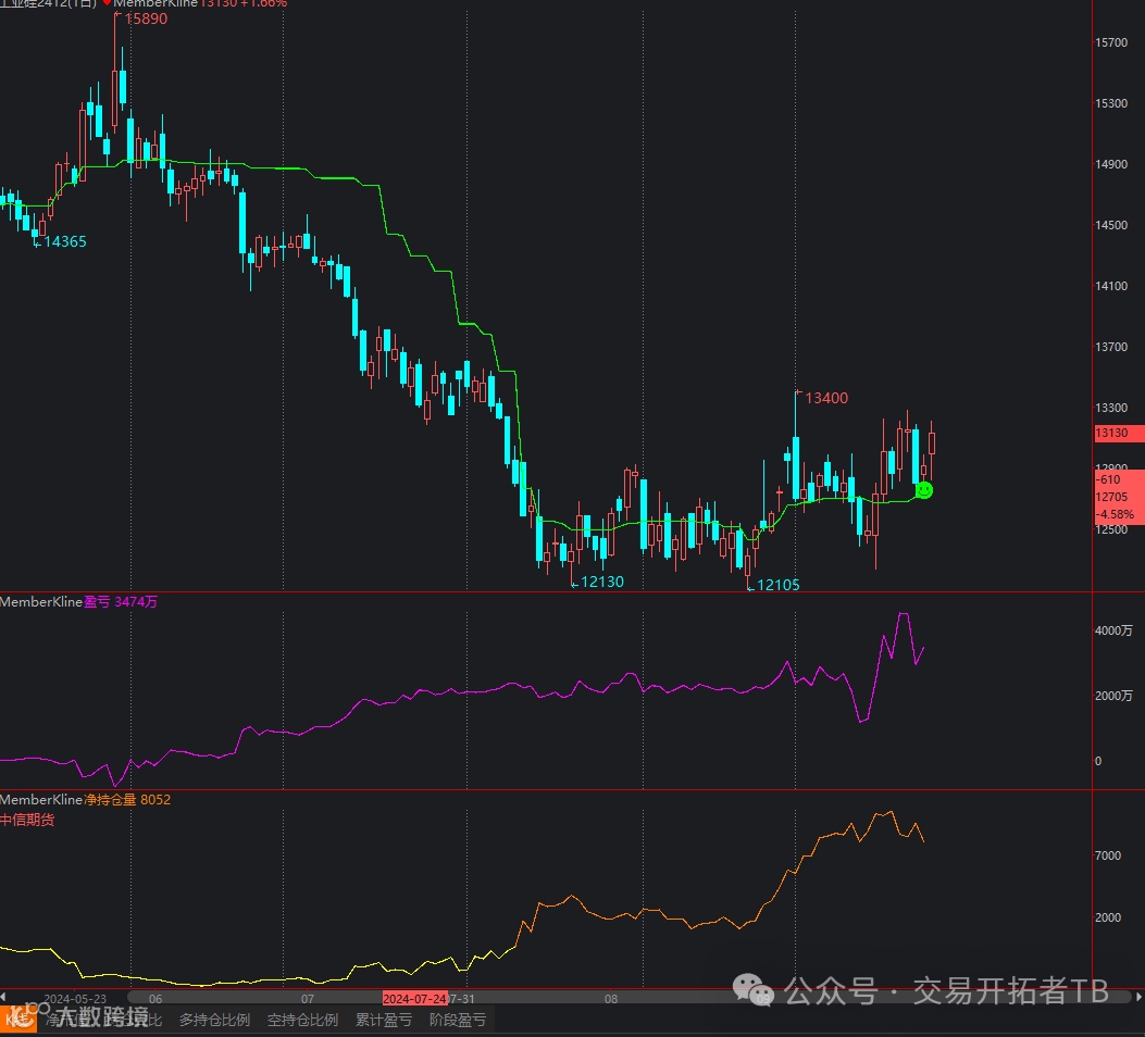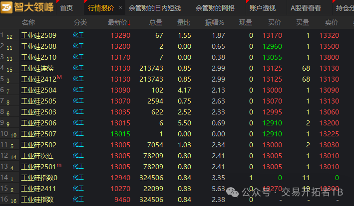 做工业硅的朋友应该都知道,工业硅近月价格很低,远月价格很高,差距高达30%。比如前些天的11月份合约是主力,他价格在10000,换到12月主力后,价格是13000,每一个大的空头趋势远近模型都是这样的,有利于企业端进来套保。