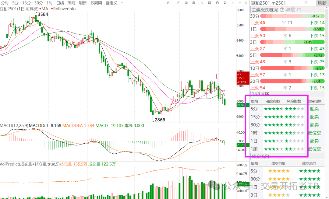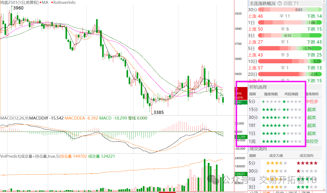 今日的鸡蛋2501合约日线收盘后,时机选择开始多周期产生“4星2星”的共振了,结合这几天给大家播报的连续剧,可以看出前几的净空敞口会员都开始盈利了,当然会员持仓上也能大致算出其成本线,如下图
