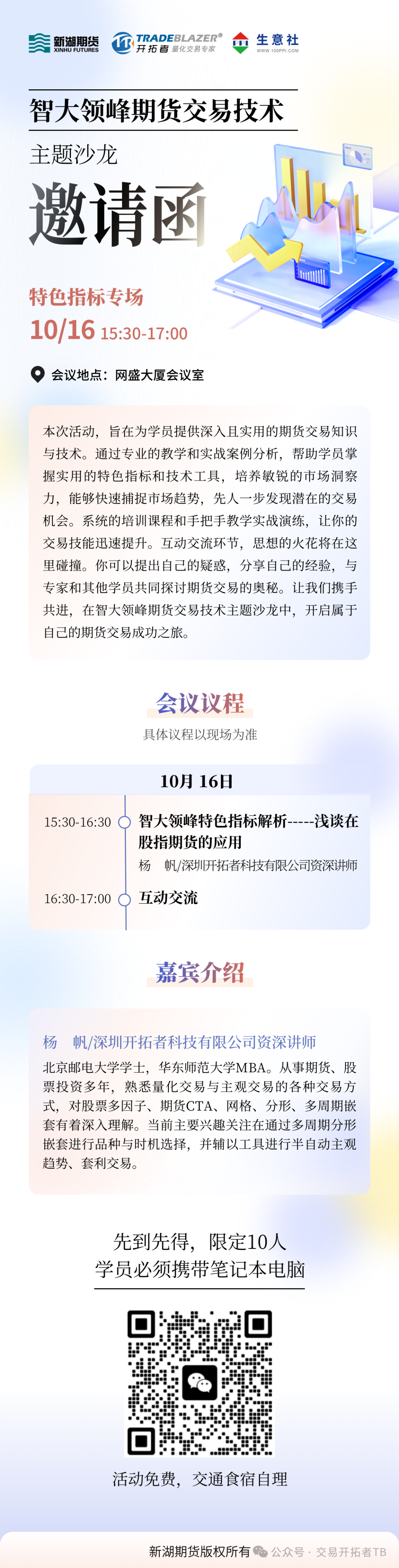 下周三要去杭州分享关于股指期货的一些交易技巧,有感兴趣的可以扫下方二维码报名!