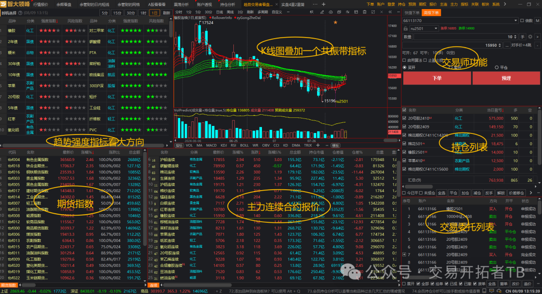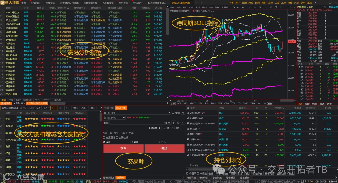 页面重点:5分钟和30分钟K线+成交力度和增减仓力度+画线下单