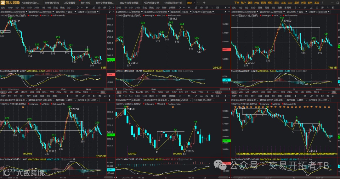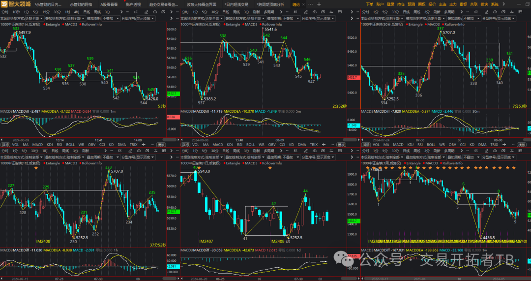 这是智大领峰系统页面,多周期缠论看盘,这个指标只有会用缠论的人看的懂哈,没学过缠论的人看的迷迷糊糊。