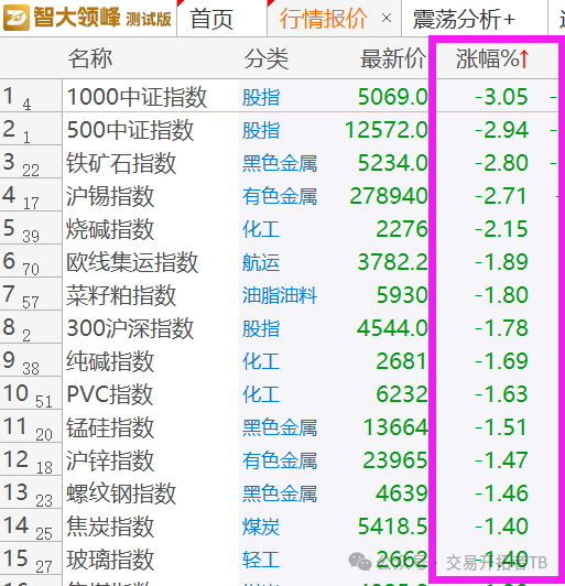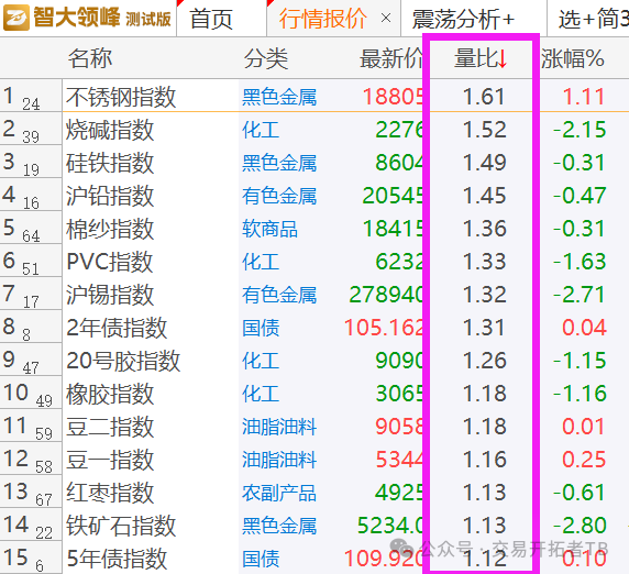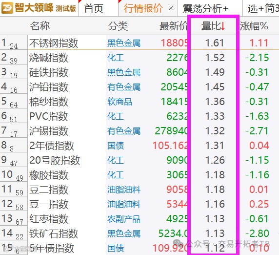 本来想通过“震荡分析”,分析分析看有没有N字形嵌套的品种,然后运行了一下字段后发现, 哈, 一大推品种都N字形嵌套向南而去了。