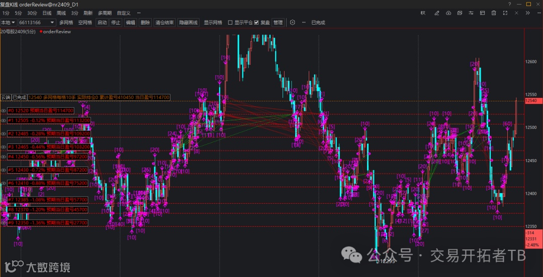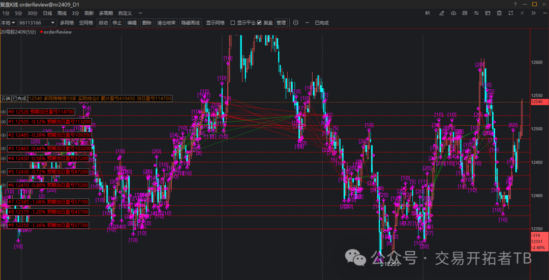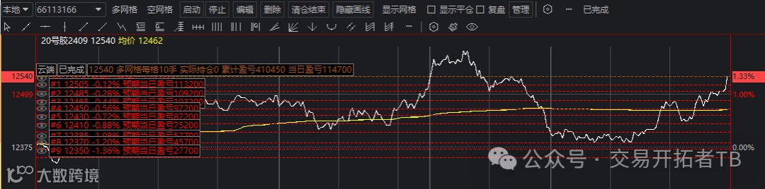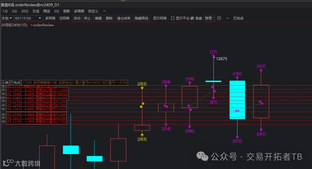 其中20号胶今天已经清仓结束了,7月30号启动的网格,到今天刚好半个月,浮盈41万。来仔细说说这笔交易!