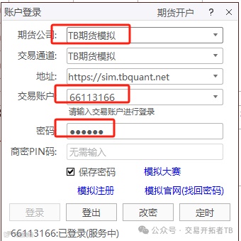 第四步,根据收到的账号和密码,登录TB模拟柜台,登录后即可看到一个初始2000万资金的模拟账户。