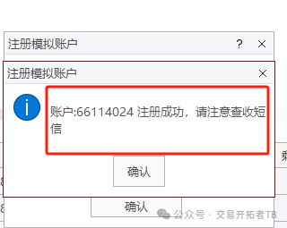 第三:注册成功后弹出的提示窗口,并且手机上会收到账号密码短信。