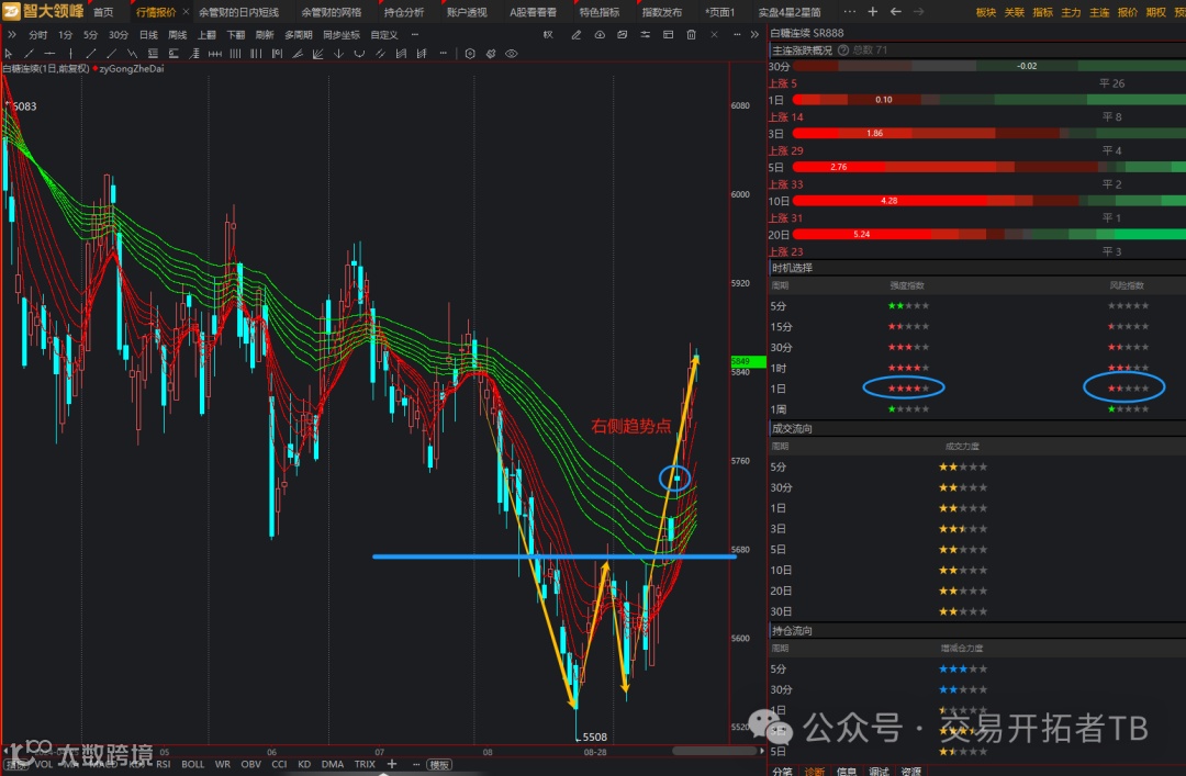 白糖的技术面有3个信号值得关注,这每个信号都是做多趋势的信号: