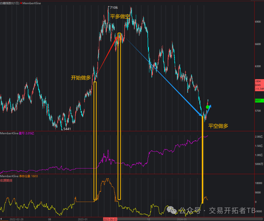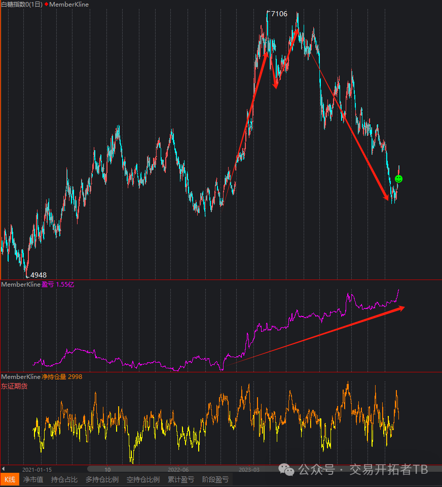 国投安信,这个席位是最近才开始空翻多,这个席位吃到了2022年白糖大涨的行情大赚2个多亿,后面跌下来,它一直在尝试做多,期望做到第二次大级别的趋势行情。