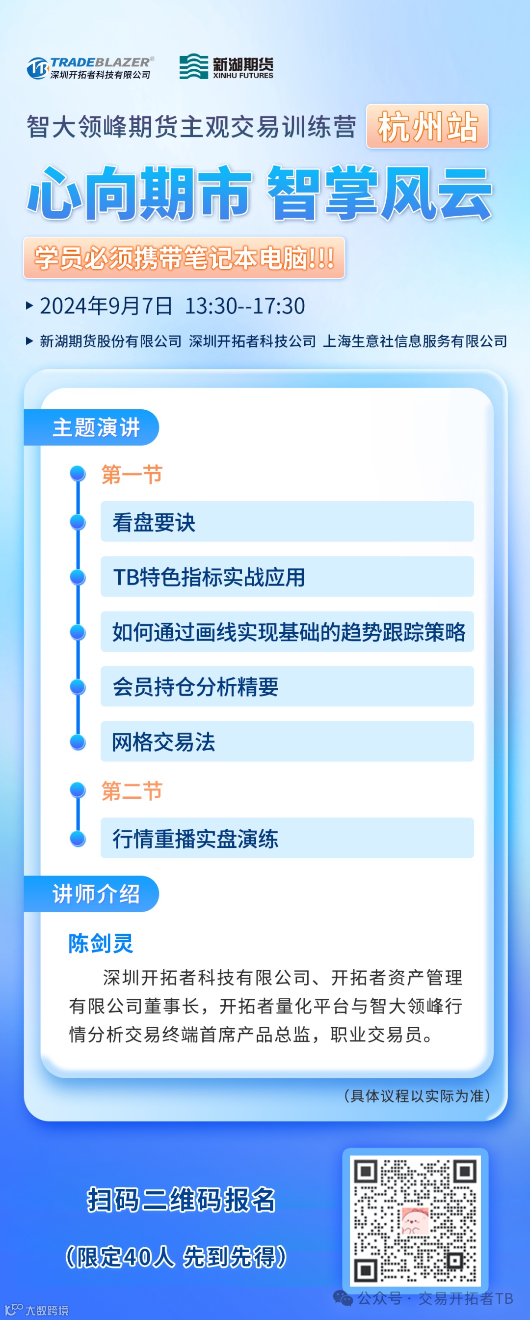 本周六下午,在杭州有一场期货交易培训,资深交易员手把手教学,通过行情重播实盘演练。详细情况看下方海报报名。
