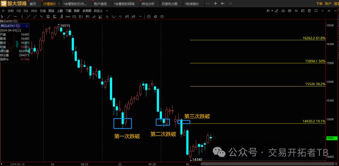 5月15日,棉花第一次跌破15000,但跌破后就快速反弹,几天反弹到15600附近就再次开始下跌。6月3日为第二次跌破15000,这次也出现小反弹到15200附近。6月13日第三次跌破15000后,到现在也没反弹上去。