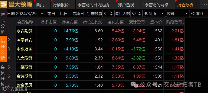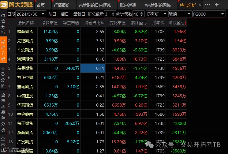 玻璃的行情也可以分为三个阶段,我就来看看这三个阶段,都有哪些席位做对行情。