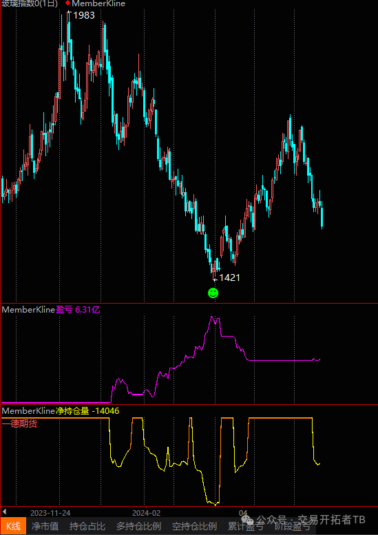好了,玻璃目前基本面上需求很弱很弱,短期空头占优势。除了做合约套利的机构,大部分主力还是以空头为主,后期就关注这些空头是继续加仓还是获利减仓。作为散户,看盘时间较少的,学习上面只做一个方向的大佬也是可以的,只研究一个品种,研究几个月把基本面研究透彻,然后择时,当然,省力的方法就是找到这种大佬进行跟单操作。