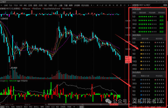 你会发现,又是和上篇复盘日记一样, 增仓放量的品种几乎不满足时机选择多周期共振的状态,可惜可惜, 那还是凭借经验看看,碳酸锂和工业硅吧