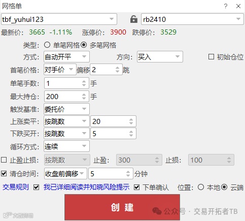 4) 方向:买入就是做多网格模式,卖出就是做空网格模式。