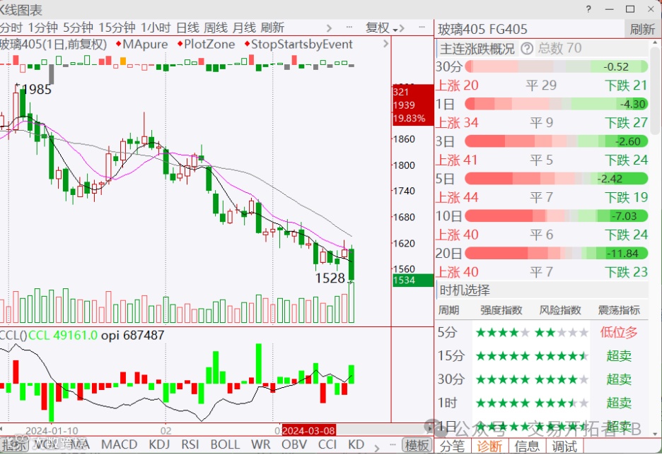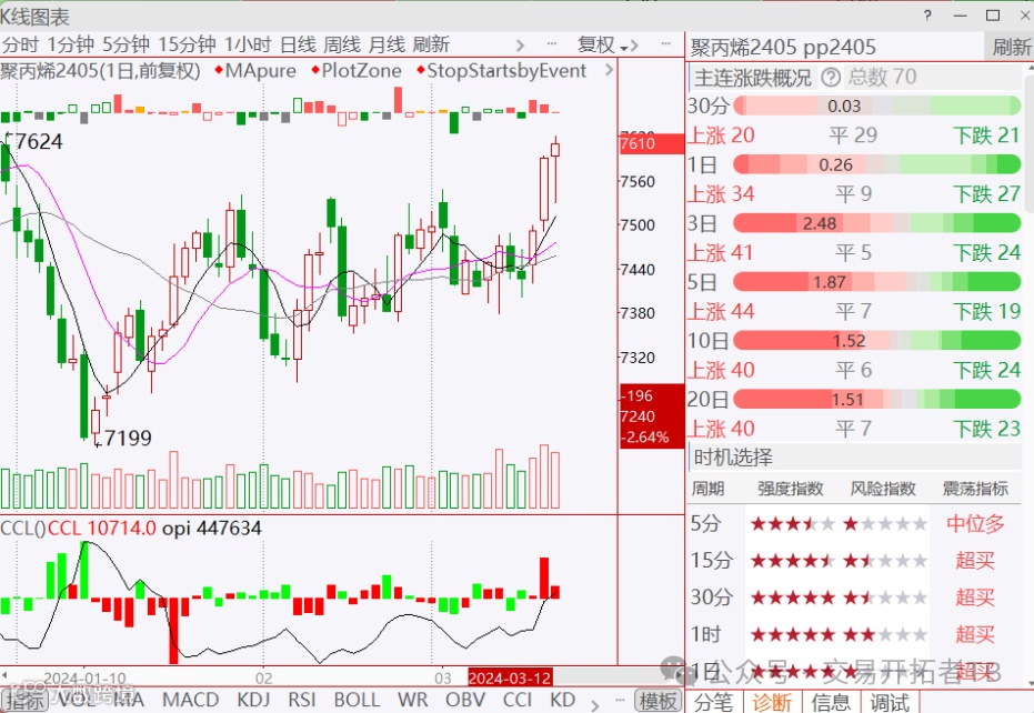 聚丙烯昨日复盘中也表现出趋势强度强且风险指数较低的多周期共振状况,今日通过一天的行情运行,在收盘时仍然表现出时机选择多周期共振的情形。那将此品种放入池子中持续的关注,是个不错的选择。