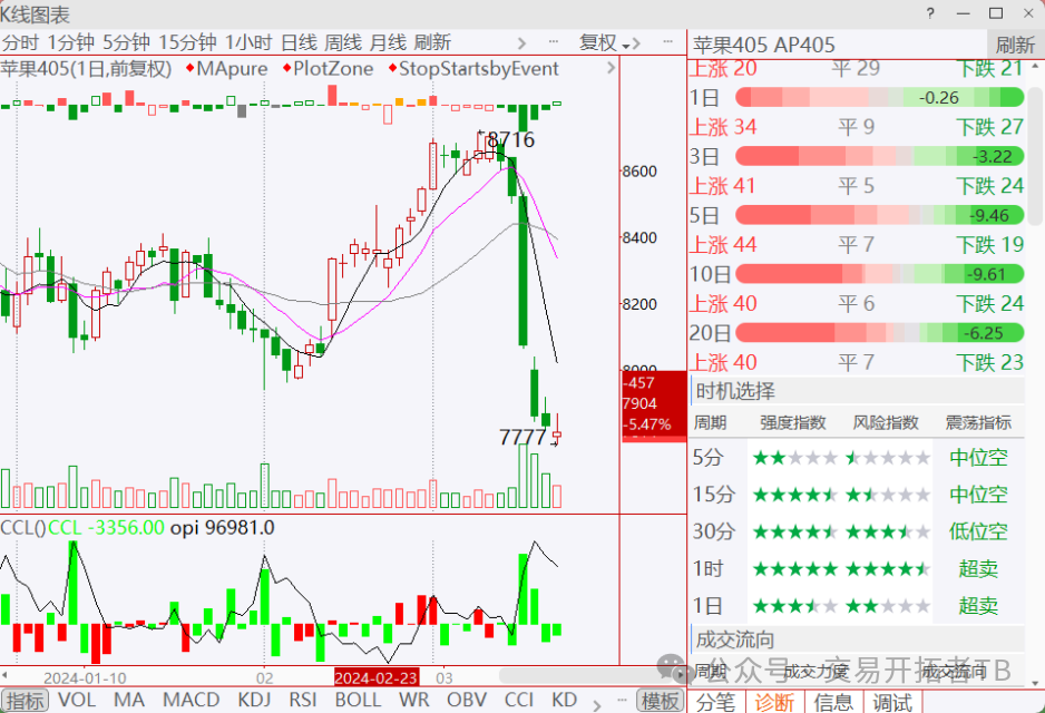 苹果昨天的量化指标显示其短期风险积聚且日线趋势强度指数并未转为强趋势,今日从时机选择上看,小时级别的风险仍未释放,且日线趋势强度并未确认。还需继续观察是否能放入每日观察池子中。