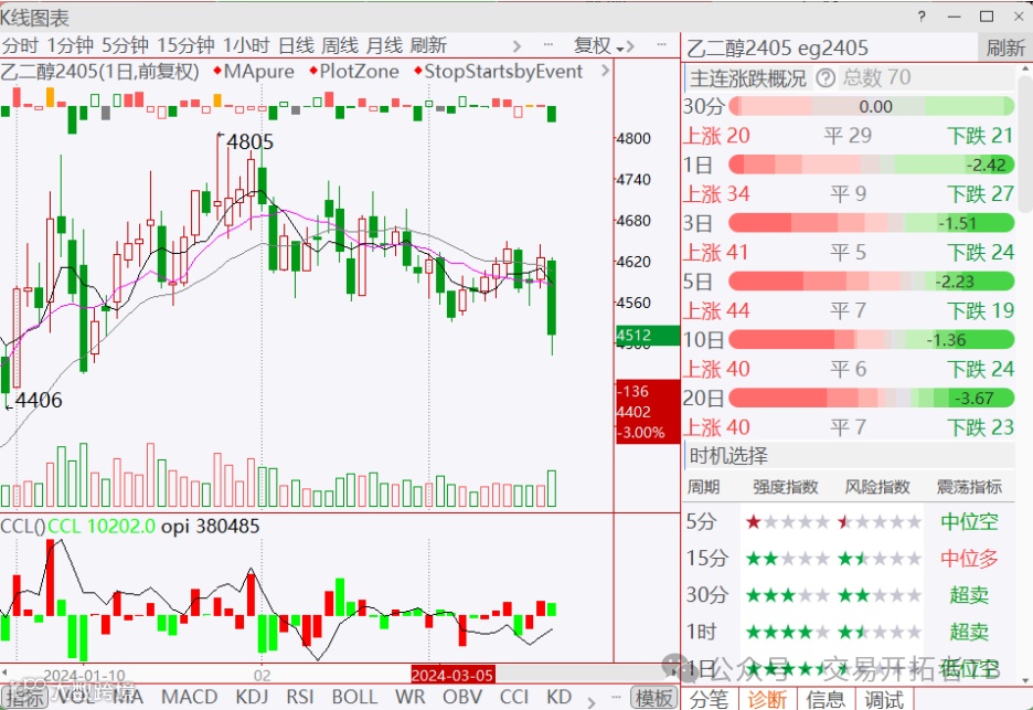 乙二醇、生猪、橡胶、玻璃都是符合足成交力度大(面积大), 净仓增仓大(红亮)的品种。那么今日的复盘对象就有了,就看看3日和1日选出的这6个品种。