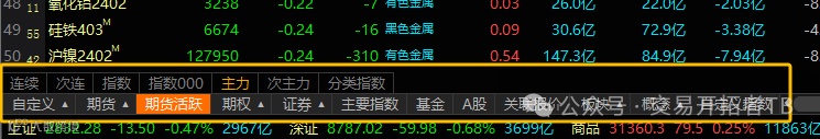 行情报价页面的左下角就是看各种行情的地方。有期货有股票,做了各种分类。