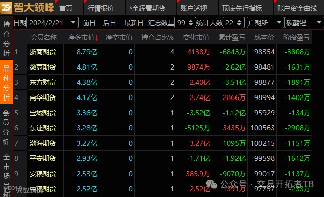 近期有几个席位突然抄底了碳酸锂,分别是渤海期货、中粮期货和宝城期货。其中中粮算是官军,渤海和宝城上经常出现千万级别的大户身影。