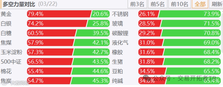 那,就顺便看了看多空力量对比中,接近或超过两对比达到2:1的品种,发现了个有趣的品种。哪一个呢?——纯碱。