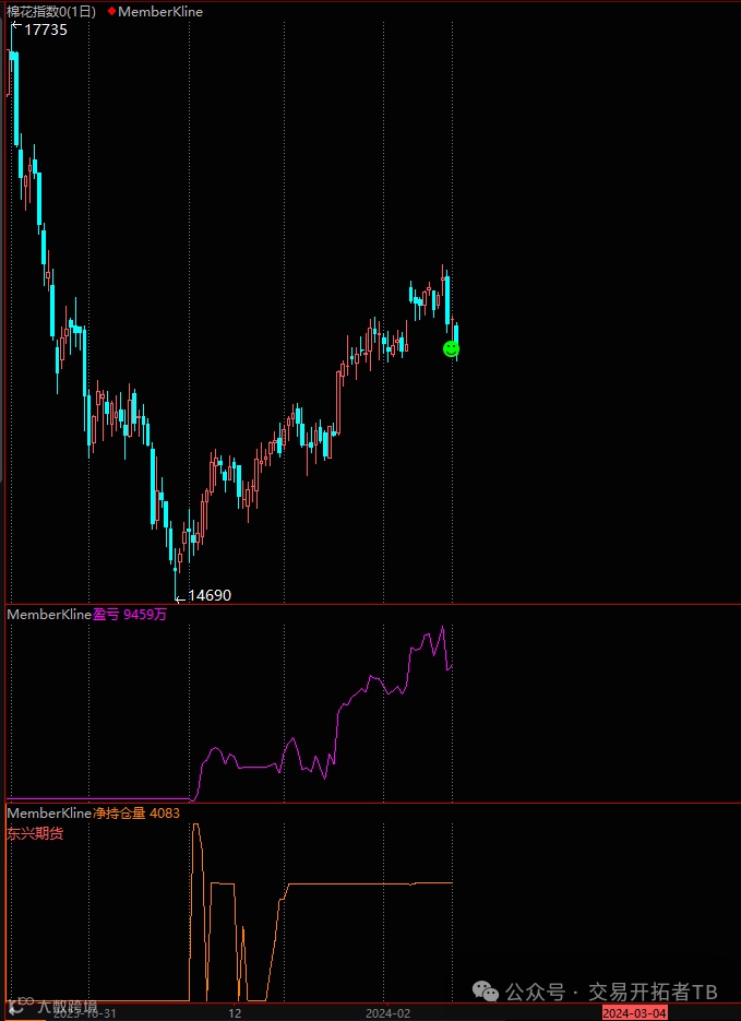 棉花期货净多头中有个大户在国元期货席位上做多了4000多手,这个席位在15000附近开始抄底,做过几次快速的交易后就开始持仓不动,目前来看已经维持2个月仓位没有大的变化。这个大户算是我见过的比较有耐心的,晚点可以关注这个大户今天有没有获利了结。