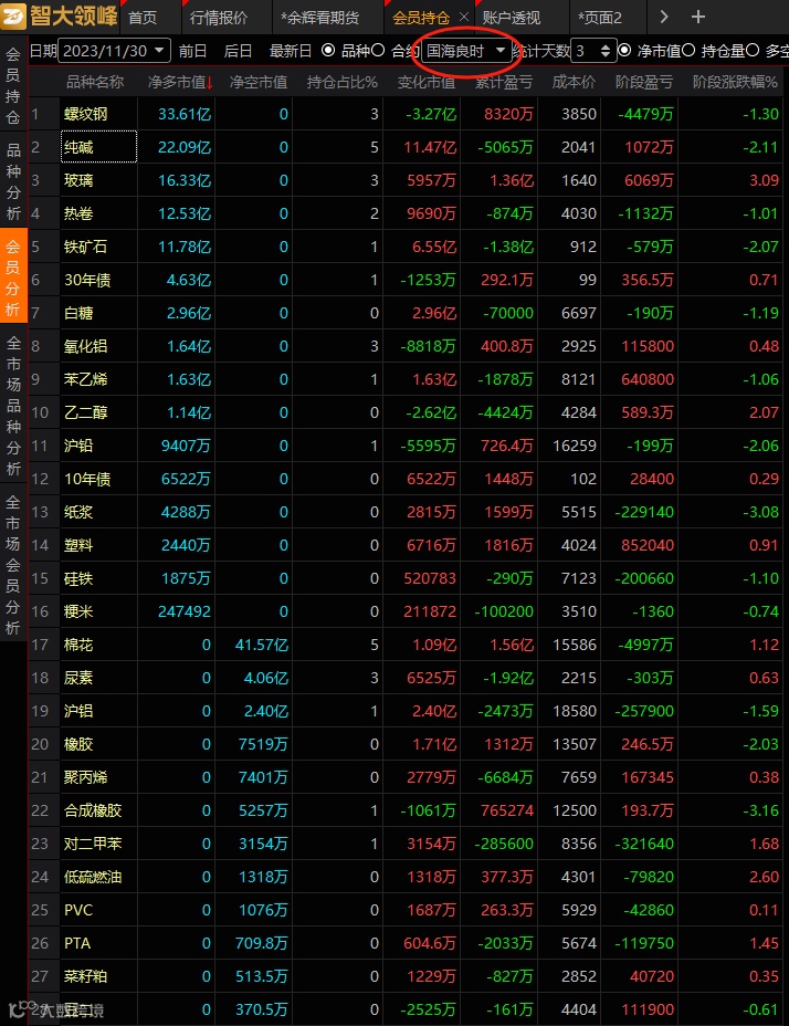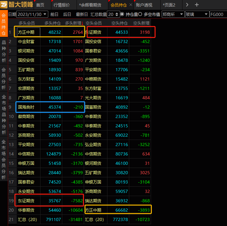 玻璃的整体逻辑,你去看昨天的文章《原创 | 抛弃螺纹钢后狂买玻璃,大佬8天豪赚1.17亿》,今天我主要来教第一次关注智大领峰的朋友如何看主力持仓,就以玻璃为例。