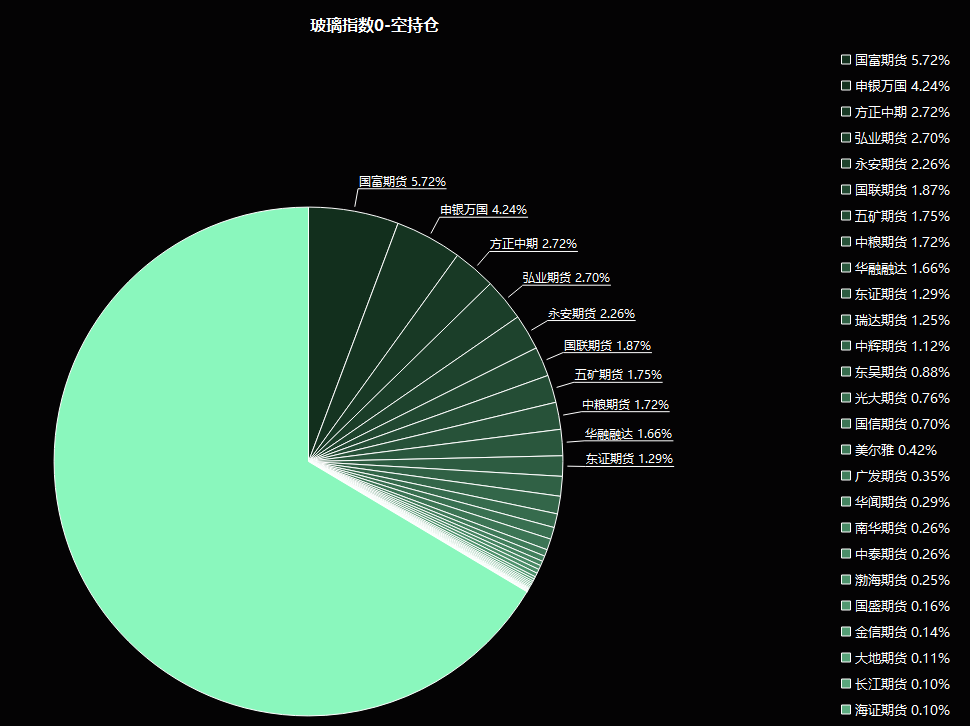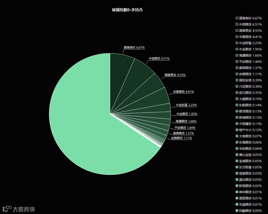 目前玻璃这个期货品种净多持仓比例最大的是国海良时,也就是我天天关注的大户席位,我给这个大户取了个爱称叫“骑士”。之后是中信期货,这个席位上很多宏观机构资金,在后面是国泰君安和华泰,两个老牌期货席位,里面机构资金也比较多。