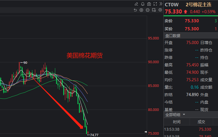 美国棉花因为农业技术更先进,价格一直比我们低,但是进口到国内来加上各种税费,是和我们不相上下的。上面的价格是没有直接的参考价值的,写出来只是给大家涨涨知识。我们需要关注的重点是:美国棉花期货自9月份高点至今跌了17%,而国内棉花主力跌幅为13%。