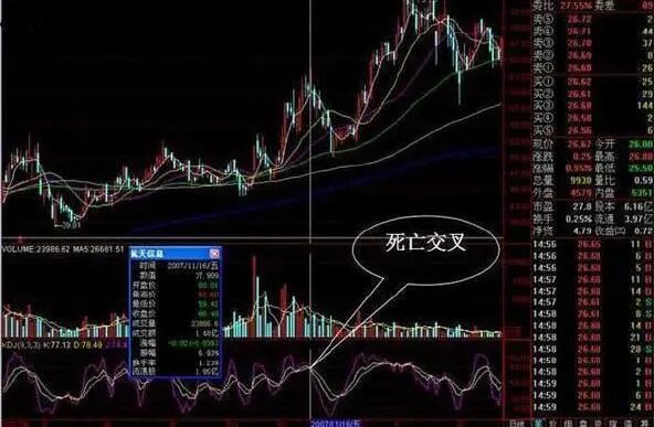 2. 上涨趋势中,K值小于D值,K线向上突破D线时,叫做金叉,是买进信号。下跌趋势中,K值大于D值,K线向下跌破D线时,就是死叉,死叉是卖出信号。