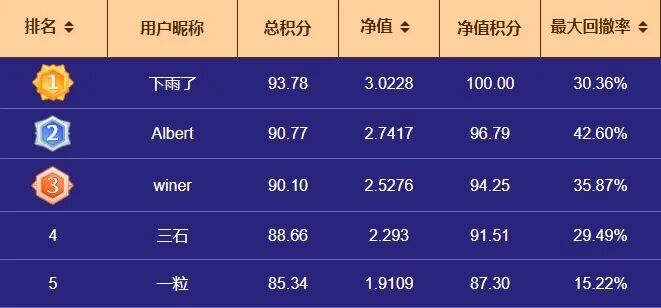 截止目前,近700名选手报名参赛,交易市场的厮杀虽然无声,亦激烈非常。三次月度冠军已被各路高手收入囊中,总榜第一净值已经达到3.0。