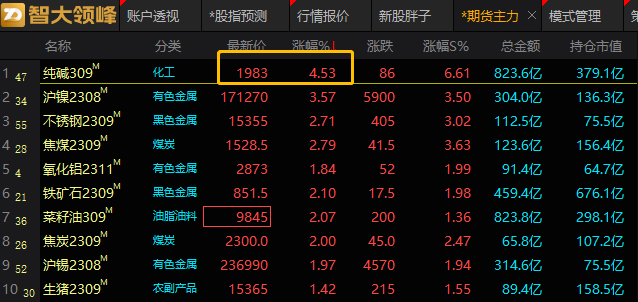 3、目前纯碱净多市值排行分别是:宝城期货15.89亿,华泰期货8.97亿,徽商期货8.88亿,信达期货8.05亿,中辉期货8亿。