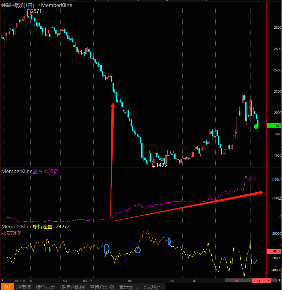 在纯碱里,今年盈利超过4亿的席位已经有5个,它们在近半个月纯碱多空快速变化的时期,盈利也都超过了1亿。我把他们称为纯碱里的“五虎上将”。