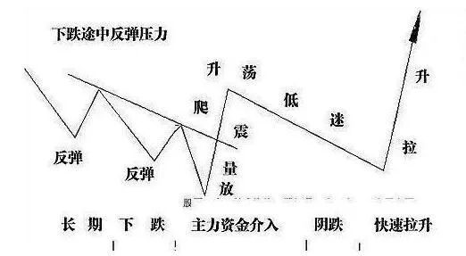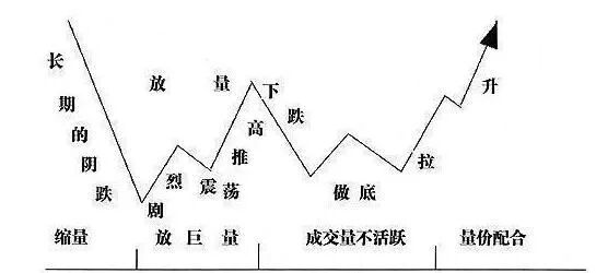 4、放量走出波段形态的上升通道、砸盘破位、缩量做底、拉升。