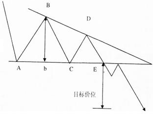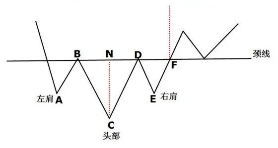 两肩形成的时间要对称。目标价位为头部到颈线BD的垂直距离下跌目标从F点算起≥CN