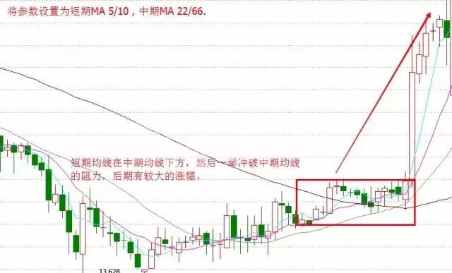 2.出现在下跌的趋势中,当短期均线和中长期均线形成低位金叉,可能有较大的涨幅;
