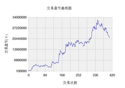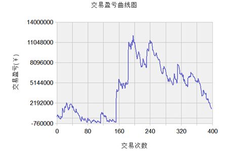下面两个图表是在沪铜指数合约和沪铜连续合约5分钟图上测试的海龟交易系统的交易盈亏曲线图。图7是沪铜指数合约的交易盈亏曲线。图8是沪铜连续合约的交易盈亏曲线。可以看出,图7的曲线显然更加平滑,且最终表现更优异。