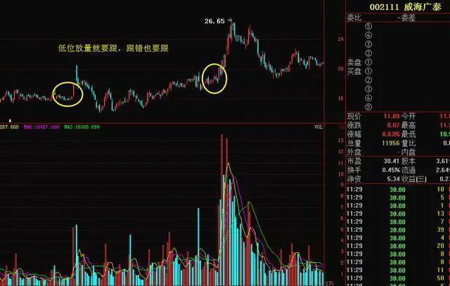 2、低位放量就要选择跟,低位放量一般都是好事,以后上涨的机率最大,因为,量放出来了,就说明资金已经开始介入了,转好的迹象。