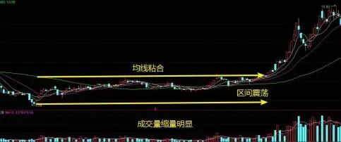 如图所示,从图中可以看出股价在低位时长期处于区间震荡内部,并且均线粘合,这种形态就是主力高度控盘的迹象。