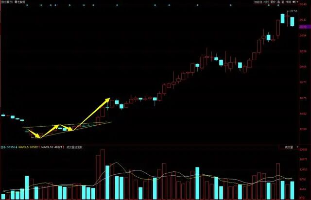 上升三角形是股价在上涨遇到阻力时反复震荡出现的三角形形态。上升三角形往往出现在震荡整理行情中,股价在反复震荡中形成了一个三角形区域。在反复震荡过程中,股价每次上涨的高点基本处于同一水平位置,而每次回落的低点逐渐上移。