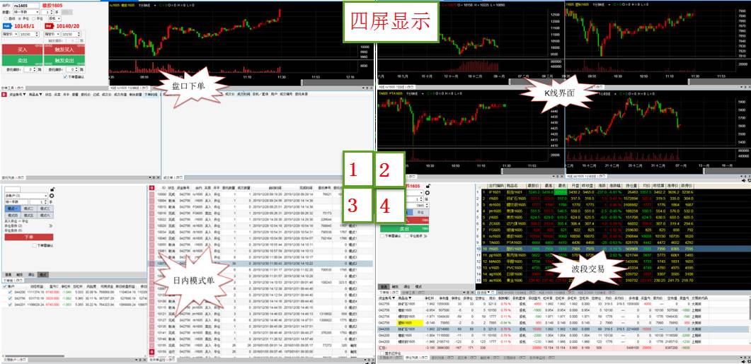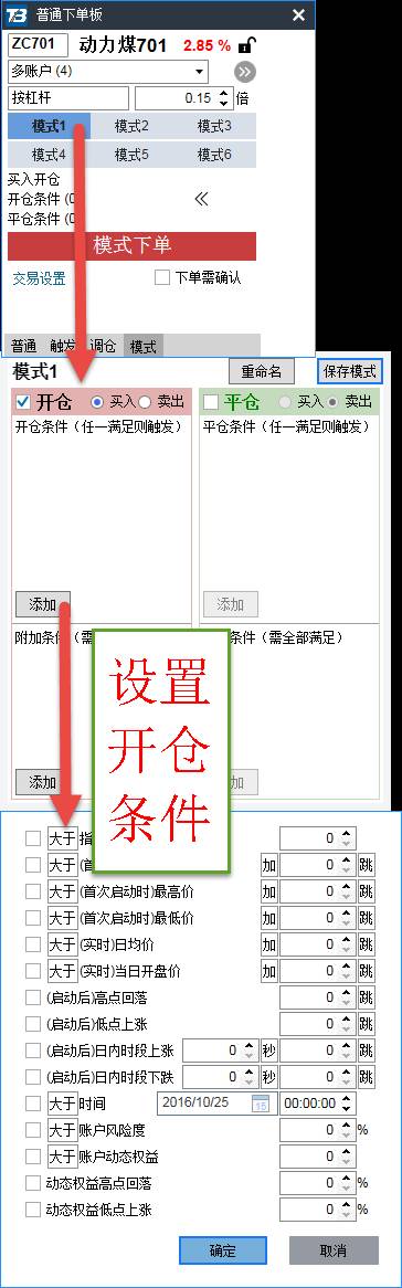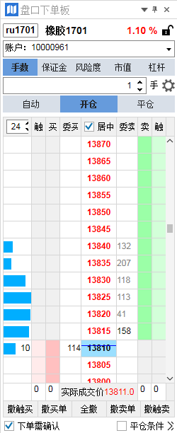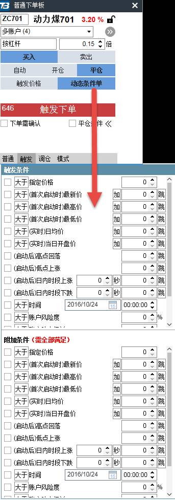 TB-Smart的专业下单板提供了普通、触发、调仓、模式和风控五种方法。可以实现多账户、多样条件的平仓单和触发单、加减仓、简单程序化、根据亏损倒推交易数量等高级下单功能。