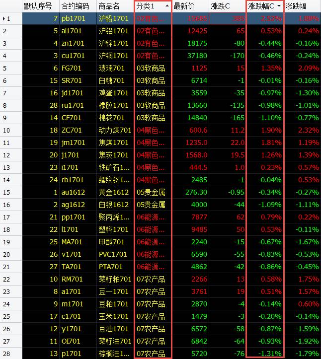 TB-Smart不仅在行情报价、持仓列表和资金账号栏目支持排序功能,并且支持多级排序。比如图中先按照板块名称排序,然后再按照涨跌幅C进行排序。