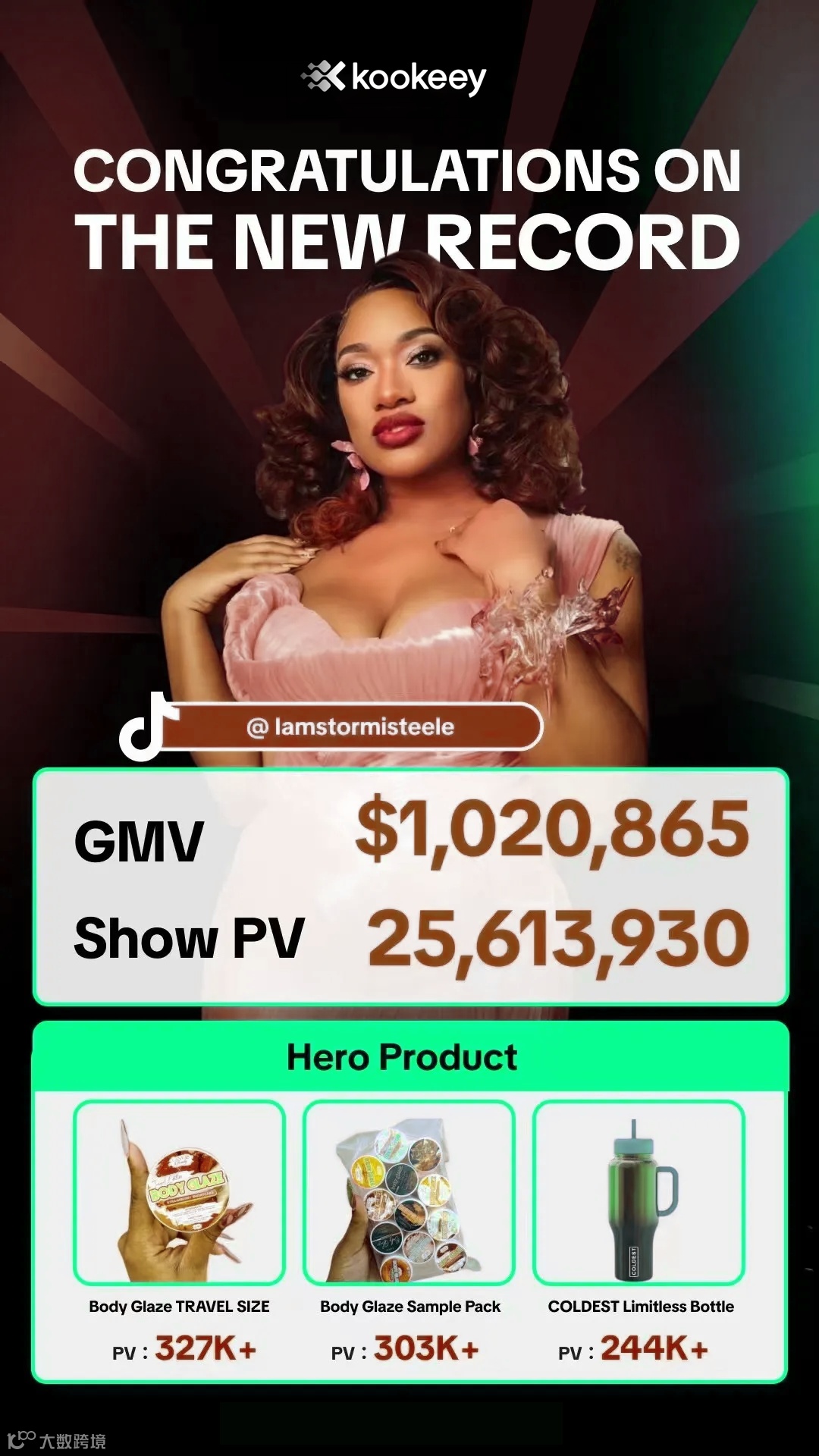 TikTok美区直播电商再创佳绩,就在前段时间,知名达人@iamstormisteele即Stormi Steele在一场直播带货活动中创造了单场GMV突破百万美元的历史纪录,迅速在社交媒体上引发了热议,这一事件不仅展现了Stormi Steele的个人能力,也凸显出TikTok这个平台在直播电商领域有无限的潜力和突破空间。