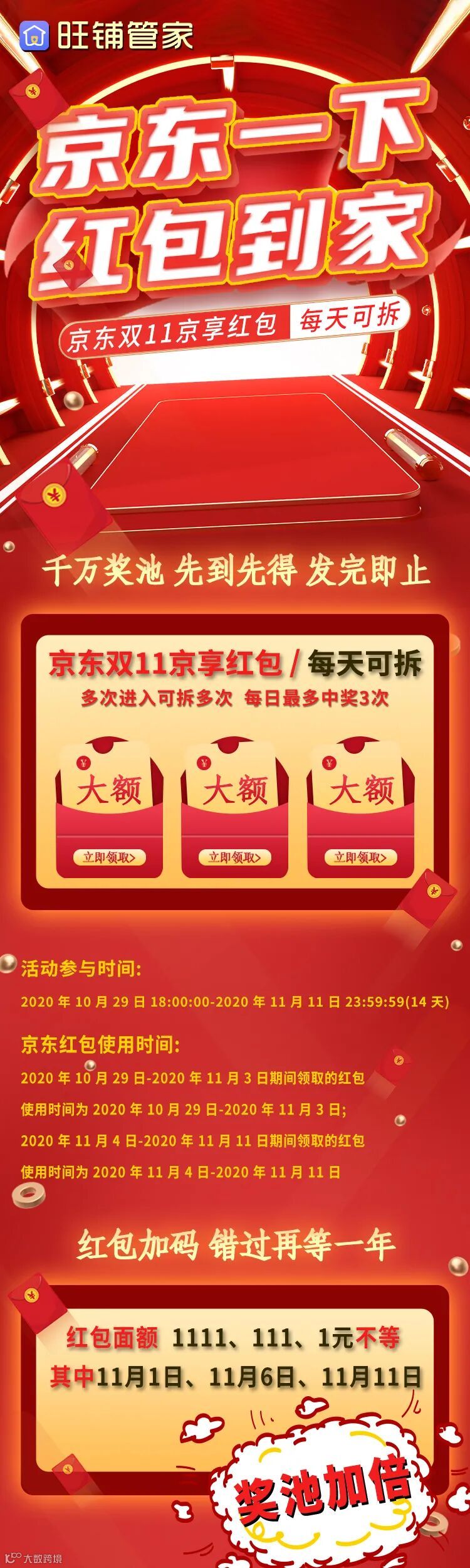 今年是特殊的一年,而“双十一”恰恰成为了释放被压抑一整年消费能力的最佳突破口,无疑,今年的双十一将格外火爆。只要你去多多参与,那么在双十一,买的便宜是必然事件。2020年10月29日18点起,进入旺铺管家服务公众号首页-底部主菜单栏-点击“双11红包”,三大会场,爆款好货,为您甄选!