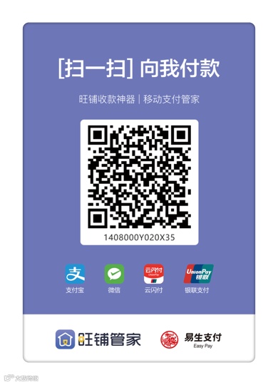 台牌可与云喇叭搭配使用,将多个二维码整合,聚合了市场上主流的微信、支付宝、银联等支付方式。