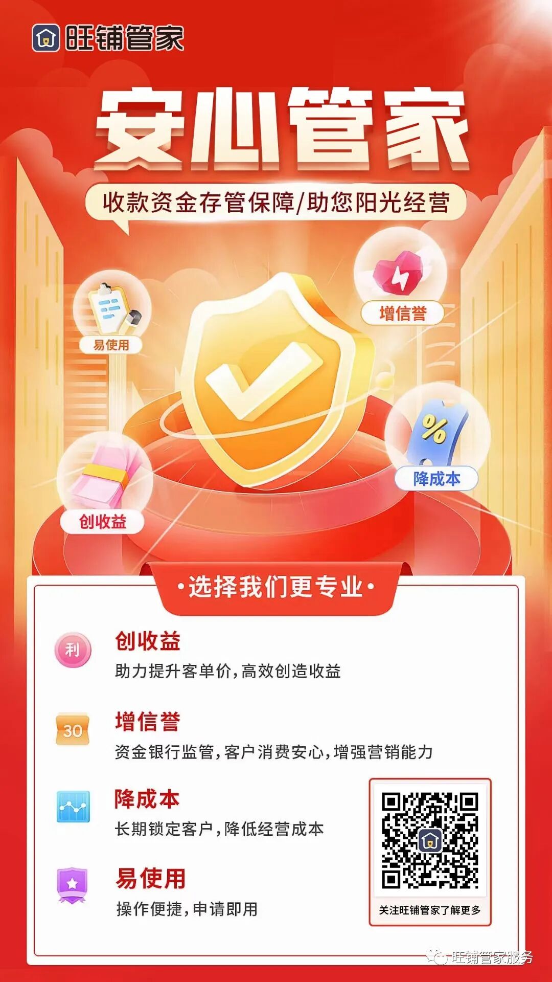 由旺铺管家基于浦发银行小浦安心付产品,搭建的安心管家平台