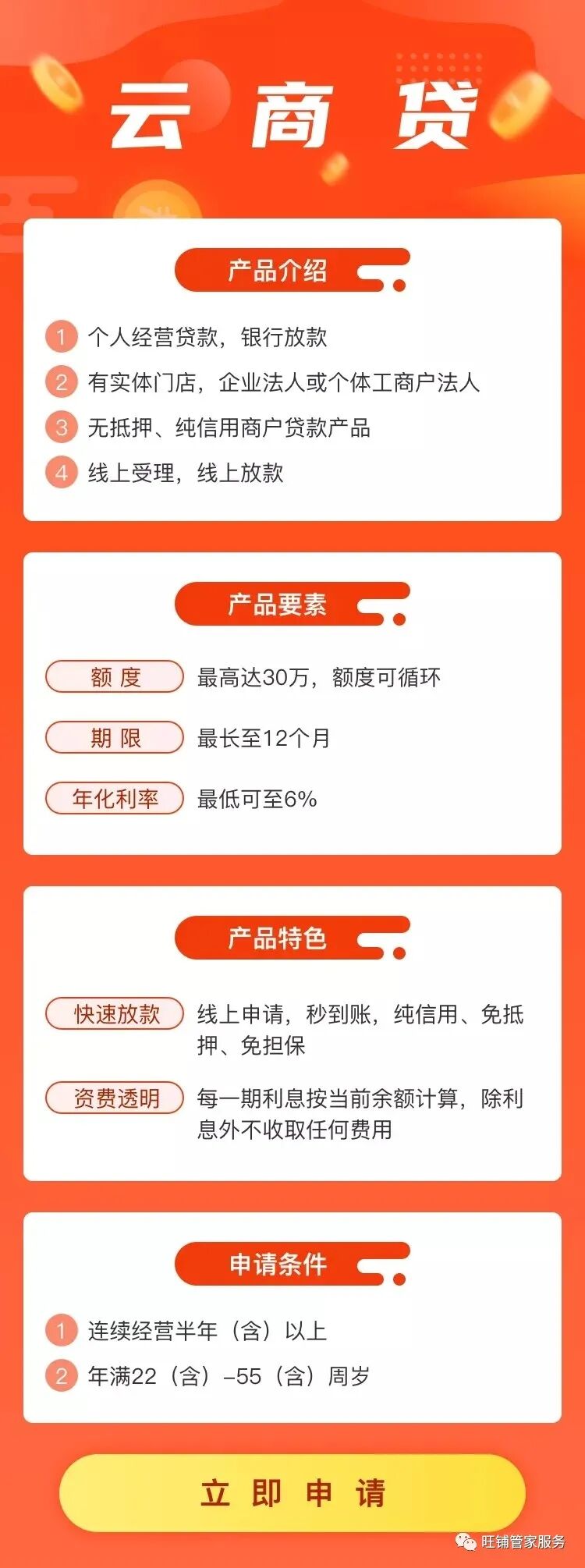 a.无抵押、纯信用商户贷款产品、最高额度30W