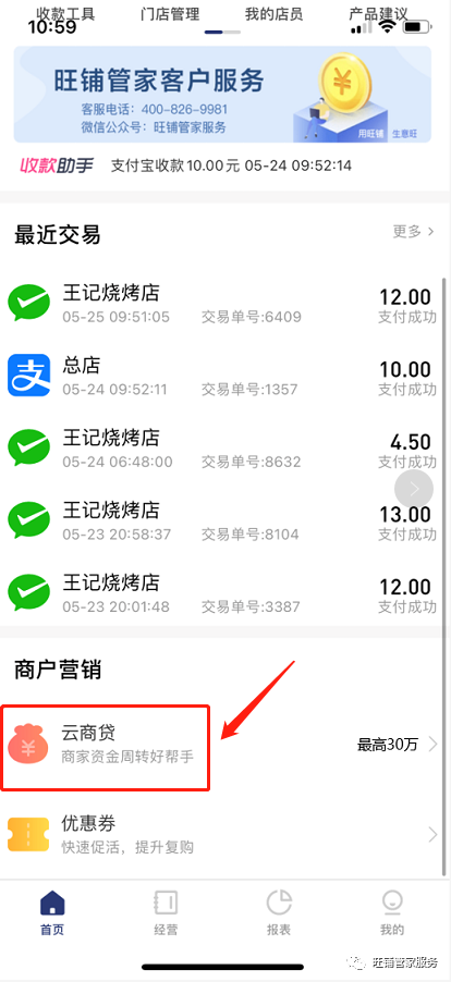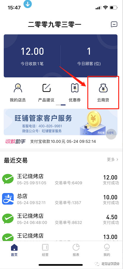 请将旺铺管家APP更新至最新版本噢,详情咨询云商贷客服电话:057188672716
