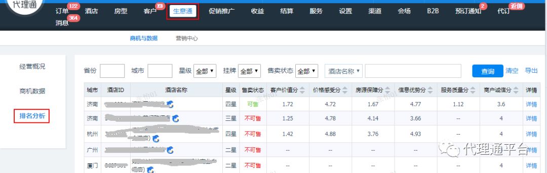 1)列表页展示各酒店各项维度分,支持维度分同城同牌排序展示